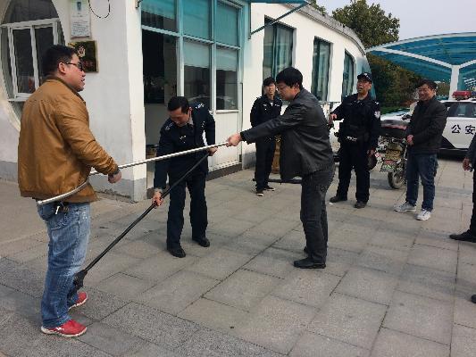 上午8:40,学校校长室组织门卫保安及安全工作领导小组成员重温了《学校安保工作制度》,并邀请派出所王警官为详细讲解了防刺服、防割手套、电警棍、辣椒水、防暴叉、捆绑绳、橡胶棍等专用反恐防暴器材的使用方法、安全注意事项及攻防技能。最后,在派出所民警的指导下,开展了“恐怖分子强行进入校园行凶,安保人员如何组织迅即处置、进行有效防御和制服”模拟演练。