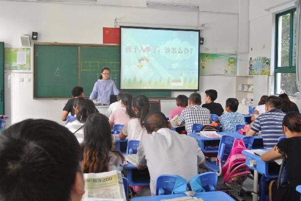9月7日下午,罗溪小学报告厅里正在进行一年级新生家长的开学培训。