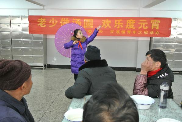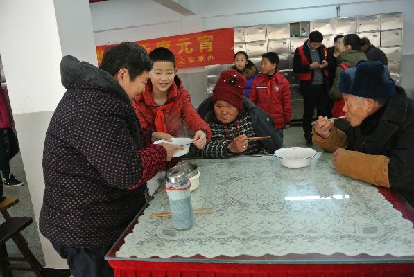 在敬老院里,少先队员们围在桌子旁,挤坯子、搓元宵,大家亲手参与着每一个步骤,虽然还不太熟练,但都享受到了制作过程带给他们的快乐。有的队员还充分发挥聪明才智,除了搓出大小不一的普通元宵之外,还搓出了各式各样的造型元宵。待到香喷喷的元宵出锅,队员们手捧一碗碗元宵热情地送到老人们的餐桌前。老人们边吃元宵汤圆边看队员们的表演,歌曲、舞蹈、乐器表演等精心准备的节目引得老人们纷纷竖起大拇指,连连叫好。整个敬老院洋溢着温馨、祥和的气氛,老人们欣慰地享受着孩子们带来的关爱、幸福。表演结束后,镇团委还贴心地给每个少先队员送上了一盏漂亮的花灯。