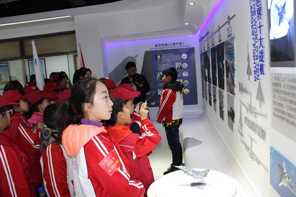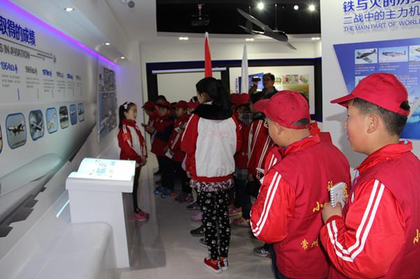 传承航空精神,放飞航空梦想。活动第一站,我们来到常州市民国防教育学校进行参观体验。展厅面积共85平方米,全厅展示内容分为世界国防、中国国防、常州国防、领导关怀四大部分,并由我校红领巾溪韵讲解团的小小讲解员们为大家作了详细的介绍。参加活动的少先队员代表和小记者们一边聆听讲解一边认真记录,了解了航空先驱、世界航空发展史、世界十大战机、中国航空事业上取得的成绩、常州空港产业园等内容,还观看了国防教育视频。望着眼前的一架架飞机模型,队员们也在憧憬着自己的航空梦想。