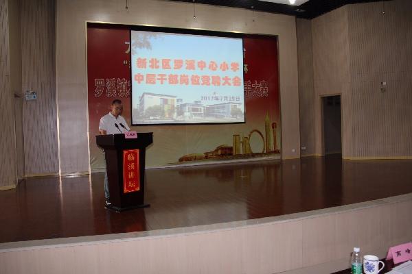 7月29日上午,罗溪中心小学全体教职工集中阶梯教室,进行学校中层岗位新一轮竞聘上岗工作。竞聘活动由徐建峰副校长主持,旨在提高学校行政服务的质量和效率,调整好学校中层干部队伍。