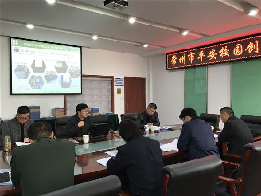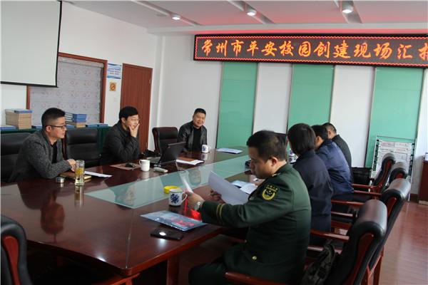学校分管校长徐建峰汇报了创建平安校园工作的进展情况。检查组听取汇报后,仔细查阅了学校安全工作相关台帐资料,并实地查看了门卫警务室、监控室、食堂、消防设备、应急疏散通道等处的安全管理情况。通过座谈,专家组成员从基础建设、安全防范、消防安全、食品安全、法治教育等方面深入了解了学校的日常安全工作情况。