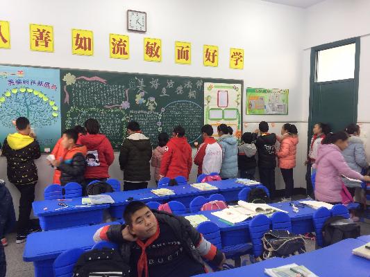 每个教室四周都贴满了“智慧果”, 这是采摘“智慧果”的现场。比赛还没开始 ,同学们早已摩拳擦掌,一手拿笔,一手拿草稿本,整装待发,期待在场上大展身手。“比赛开始”随着老师一声令下,同学们纷纷凑到这些数学趣题面前,认真读题,开动大脑,充分融入到了智慧的海洋中。只见同学们时而紧张的计算;时而小声议论;时而满怀期待地核对答案;时而传来摘到“智慧果”的喜讯:“噢耶!我做对啦!”,同时又伴随着另一个声音:“唉,我也想到正确答案了,可惜还是晚了一步!”紧张激烈的比赛持续了整整一节课,同学们你争我抢,比知识,比速度。随着一分一秒的流逝,智慧树上的智慧果也都贴满了,同学们脸上露出了喜悦的笑容。
