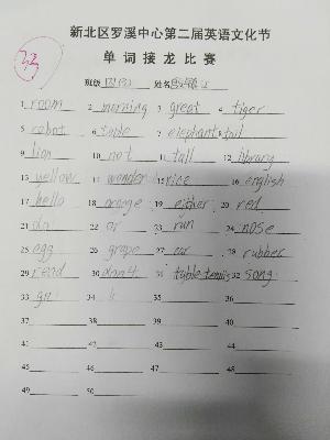 本次活动旨在通过竞赛,让孩子们深刻认识到英语单词的重要性,挖掘学生的学习潜能,营造浓厚的英语学习氛围。四年级各班在班级选拔的基础上,推荐8名优秀选手参加年级比赛。比赛中要求学生根据老师提供的初始单词的末字母进行单词接龙,在规定的时间内看哪位同学完成得既多又对。赛场上,孩子们争分夺秒,奋笔疾书,竞争十分激烈。最终,四(3)的殷镇江在2分钟之内完成了33个正确单词,夺得了冠军。