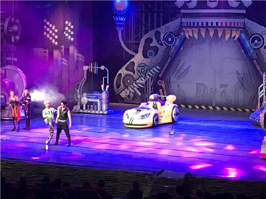 下午,小记者们来到了恐龙城大剧场,观看了《疯狂恐龙人》大型演出,充分领略了独一无二的恐龙文化和激情四射的打击乐、震撼人心的中国功夫、时尚潮流的现代舞和精彩绝伦的特技表演。小记者们喜欢的卡通人物都真实地展现在眼前,他们特别兴奋,都跟着演员们一起跳啊、乐啊!笑翻了恐龙城剧场。