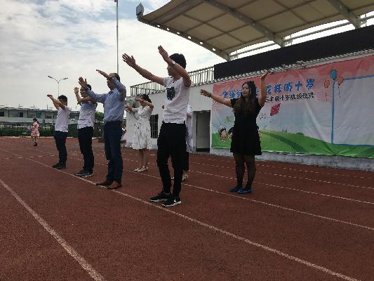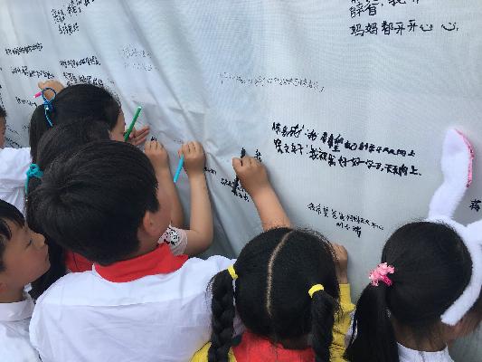 《让世界因我而美丽》开启了十岁成长仪式的序幕。兔子舞、跪羊图、诗朗诵,同学们的精彩才艺展示了他们在罗小生活的充实健康,积极阳光,更能表达他们对美好生活的满意与祝愿。十岁,有父母的挚爱,灵溪娃幸福长大!惊喜伴随着欢笑,拥抱浸润着感恩,孩子成长仪式浓浓的爱感染着在场的每一个人。十岁,有老师的引领,灵溪娃掌握真知!灵溪娃们向全体老师大声说:“谢谢老师!老师,您辛苦了!我们爱您!”十岁,有同学的陪伴,灵溪娃体验快乐!灵溪娃们和身边的同学一起“游戏快乐多”。接着,家长团、班主任老师、学生代表分别为大家送上了成长祝福话语,殷国伟校长发表了热情洋溢的致辞,他祝福孩子们告别童年,不断走向成熟,并希望孩子们怀抱梦想,心怀感恩,笃学诚信,博爱自强,永远健康快乐地成长。活动最后,孩子们在鲜艳的国旗下说出我们的十岁宣言,并走向“希望墙”写下寄语。