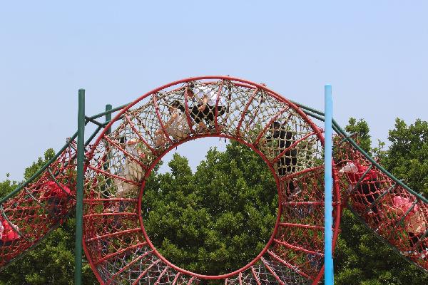 在“挑战勇敢者之路”上,学员们分组开展团体体能训练比赛,在教官的一声令下,队员们纷纷摈弃恐惧,过独木桥、钻网状笼、爬攀岩墙……在保证安全的前提下,积极参与各项实践拓展活动。他们的身体素质和胆量都由此得到了锻炼。