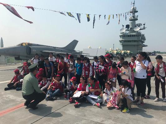 “国防教育区”让少年军校学员们感受到了中国人民解放军保家卫国的赤子之心。兵器博览馆和古今中外事迹展览馆的参观,则让学员们回顾了中华崛起之路,感受到了中国发展之强。通过参观航母及聆听教官讲解,了解了许多现代化兵器以及前辈们为国家安全立下的屡屡战功。国家安全教育馆、武器展览厅、航空博物馆展览,同学们感受到了我国国防力量的飞速发展,增强了国防意识和爱国主义情感和国家安全意识。