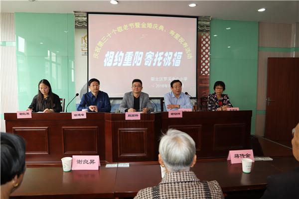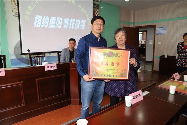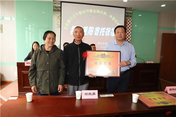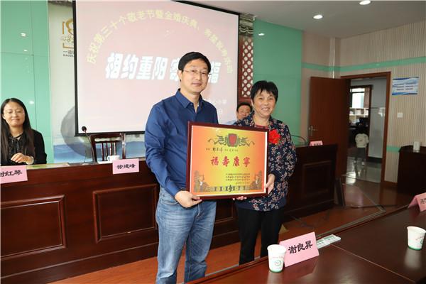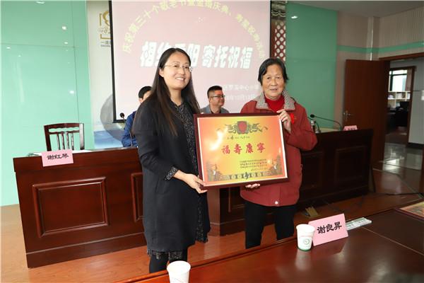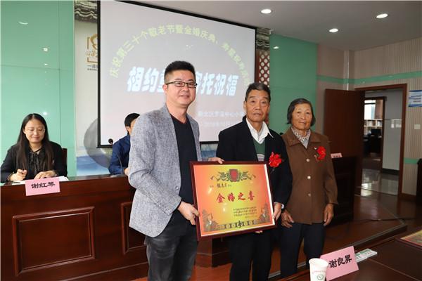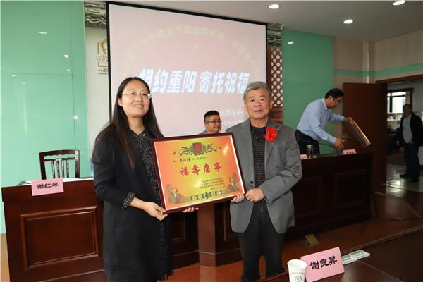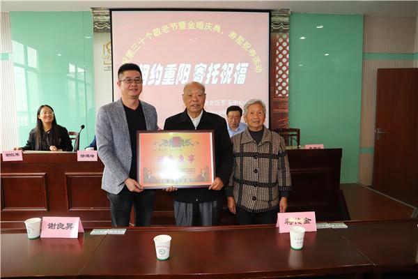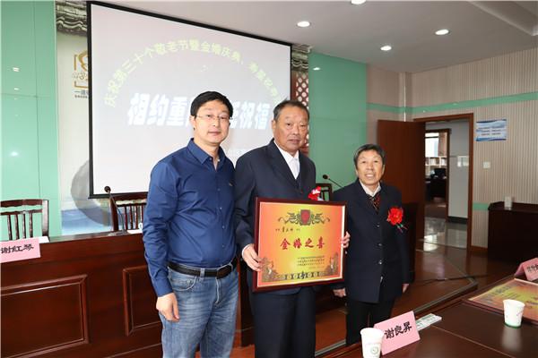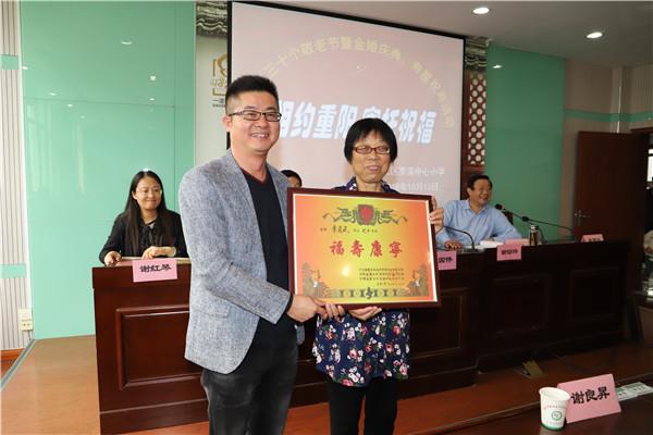随后,在喜庆的音乐声中,学校领导为三位70周岁、四位80周岁教师颁发了祝寿状,为2对夫妇颁发了金婚状。让在座的每一位老教师分享了“执子之手,与之偕老”的甜蜜与喜悦。