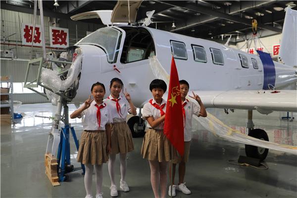 当走进飞机制造车间,队员们满脸的惊喜溢于言表。当触摸到这架P750飞机时,队员们惊叹不已。简短的互动,让队员们知道了“P750飞机”虽然个头不大,但结实可靠,易于保养,易于操作。它还是一架多才多艺、高性价比的飞机,它起降灵活、具备客货运、旅游观光、航测航拍、侦查巡逻、农林喷洒、空中灭火等功能,被世界公认为跳伞的最佳机型。“我了解到了P750飞机有什么作用,还有它的用途是什么。”、“我知道了P750飞机的身长、体重等重要知识,我相信这些知识对我以后是很有帮助的。” 队员们情不自禁地发出自己的感慨。