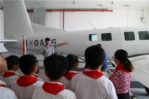 习近平总书记在中国少年先锋队第七次全国代表大会上,向全国少年儿童提出了“从小学习做人、从小学习立志、从小学习创造”的三点希望。为了跟随习近平总书记的步伐,10月8号上午,罗溪中心小学组织部分师生,来到了北京通航旗下常州泛太平洋航空技术有限公司,寻访家乡的骄傲——P750飞机。