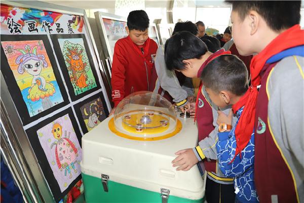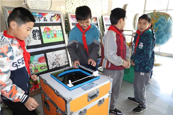 11月2日,科学大众事业发展部梁尚文主任到我校开展了为期半天的“科学大众·快乐科学号进校园”科普公益活动。此次活动由江苏省文明办、江苏省科学技术协会、江苏省教育厅、江苏省科学技术厅主办,江苏省科学传播中心、江苏省科普作家协会承办,主要以互动性、展示性的科技展品为主。15个箱子,装有15个神奇,涉及力学、声学、光学、机械学、电学、数学、热学、磁学、拓扑学等。通过各种神秘而有趣的实验,让孩子动手、体验,引发对科学的兴趣。不出学校,就能让孩子们体验小型科技馆的魅力。让孩子们亲身体验和感受科学,在快乐中学习,提高他们的实践、创新能力。整整半天,老师和孩子依次在这里与神奇的科学实验亲密接触,整个场馆处处洋溢着热闹的氛围。