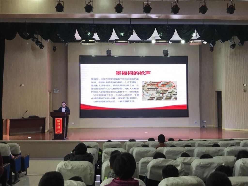 2018年11月30日下午,罗溪中心小学关工委和罗溪空港社区联合举办了“讲南村故事 树时代新风”故事报告会,特聘请了退休老师李俊官老师及空港社区的故事讲解员为学生们讲了罗溪南村谢荣元等革命烈士的系列故事。李老师用大量的历史资料、生动的语言形象地再现了当年谢荣元等革命烈士不屈不挠、顽强拼搏、勇于献身的革命精神,给孩子们上了一堂生动的爱国主义教育课。孩子们表示,要时刻缅怀英烈,崇敬英雄,学习英雄,爱党爱国,牢记历史,勤奋学习,长大后报效祖国。