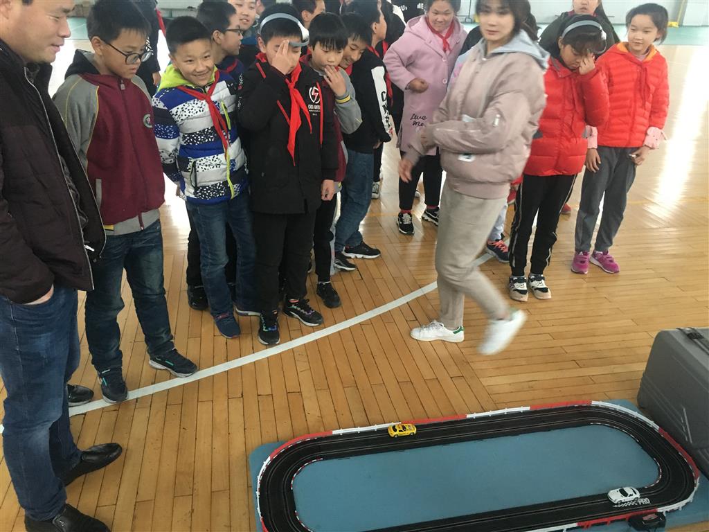 然后,同学们来到了学校体育馆,进行了“脑电赛车”人工智能科普活动,男生女生分别佩戴专业的仪器用脑电波驱动赛车进行比赛。活动激发了学生对科学的好奇心和探究的欲望。
