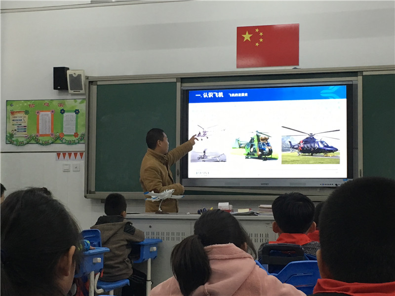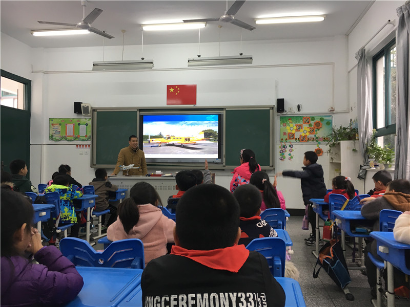“快看快看,二(1)班讲台上有一架飞机模型呢!”“哇!是什么课啊?”许多好奇的小朋友们纷纷议论着。原来是二(1)班小朋友们在学习航空知识,但是不是学校的科学老师为他们上课,而是一位小朋友的爸爸在上课呢,有很多大家平常没见过的飞机知识介绍哦。