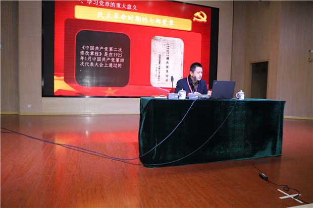 党章是每个共产党员的政治灵魂,学好党章是全面从严治党的必然要求。巢峰飙讲师精心准备了学习内容,从历次党章修改的历史背景入手,从1921年一大立党,二大立纲,直至召开的党的十九大对党章进行的第十七次修改,对党章在不同历史时期的修改做了深刻的讲解,尤其在十九大上修改的内容,逐条进行了深入浅出的解读,对党章探索总结的宝贵经验进行了理论升华。他还结合自身学习党章、抄写党章的体会与党员们进行了分享。