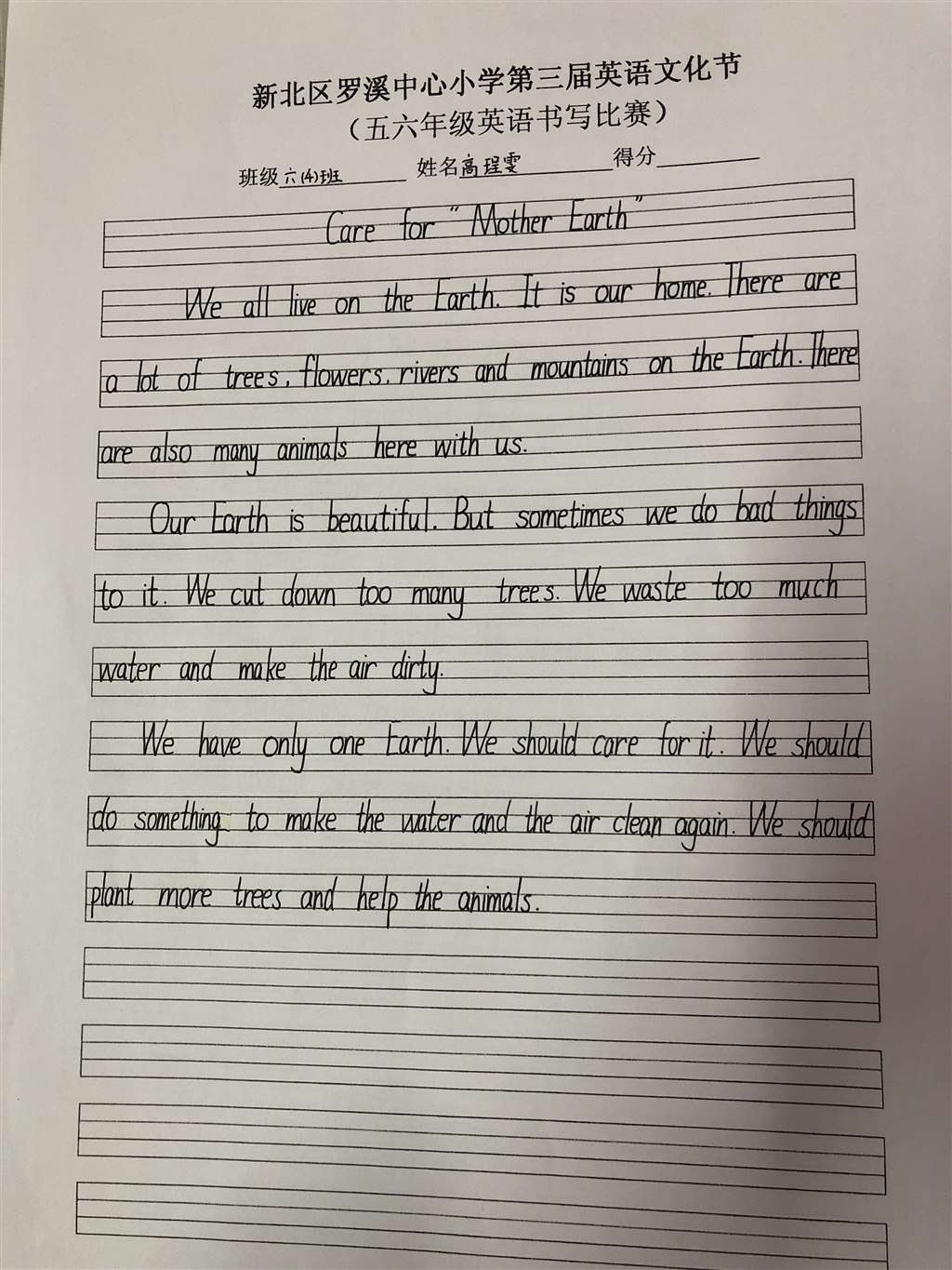 本次活动的开展,不仅丰富了学生的校园文化生活,也给了学生们一个充分展示自己的舞台,进一步激发了他们学习英语的兴趣,让每一个学生认识到英语规范书写的重要性,同时也享受到了英语学习的快乐。