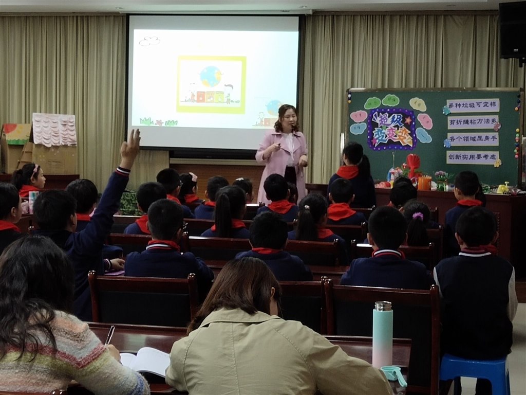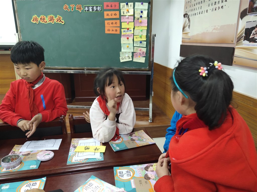 在这次的教研活动中,百丈中心小学的李英花老师和春江中心小学的韩露老师分别带来了《超级变变变》和《传统游戏我会玩》两节课。李老师把班队和品德课《绿色小卫士》进行整合,围绕学生的生活实际,在“展示——变废为宝我能行”、“讨论——小组合作知方法”、“采访——交流感受谈收获”、“呼吁——我们应该怎么做”四个环节中,引导学生树立环保意识和创新意识。课堂伊始,各小组(情景剧、三句半、时装秀)丰富新颖的汇报形式是本节课的一大亮点。课末的设计“超级变变变,变出了实质性物品的同时,还变出了什么?”巧妙地实现了育人价值。韩老师根据二年级学生的特点设计教学,把“传统游戏知多少”、“传统游戏我会玩”、“传统游戏代代传”三个环节串联起来,引导孩子们在玩中学,学中悟。课前,有意识地利用家长资源这个平台让学生做好了充分的学习准备;课中,韩老师注重生生之间的互动交流,做到鼓励及时,循循善诱,使得孩子们学有所得。两位老师精心准备,用饱满的热情展示了自己独特的教学风采。