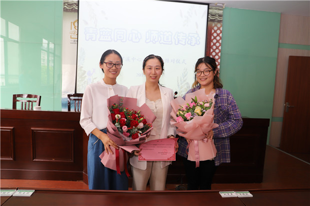 接下来徒弟们向师傅献上了最美的鲜花。师傅代表宗湛蓝老师说出了所有师傅老师们的心里话,愿意把自己教育教学方面的宝贵经验、业务技能毫无保留地传授给新教师,为他们的快速成长尽自己一份力量。青年教师沈静代表徒弟老师们作了表态,会在工作中多听课、多学习、多思考,在实践中充分吸收师傅教师的丰富经验,并从自身特点出发,合理借鉴。