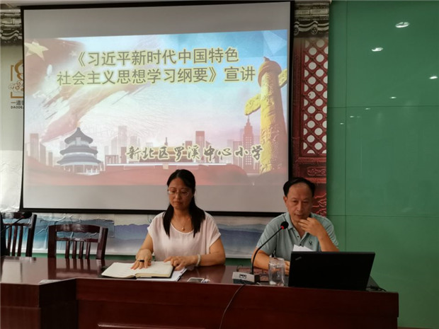 2019年9月9日下午,新北区罗溪中心小学组织全体教师认真进行了《习近平新时代中国特色社会主义思想学习纲要》的专题学习。会上,卢庆平主任对习近平新时代中国特色社会主义思想作了全面系统的阐述。老师们通过学习,更好地理解把握了这一思想的基本精神、基本内容、基本要求,深刻领会到这一思想的时代意义、理论意义、实践意义、世界意义。把学习《纲要》与读原著、学原文、悟原理紧密结合起来,做到学思用贯通、知信行统一。每位老师都要对“四个全面”、“四个自信”、“两个维护”等基本知识铭记于心。并且深刻把握贯穿其中的马克思主义立场观点方法,坚持不懈用习近平新时代中国特色社会主义思想武装头脑、指导实践、推动工作。
