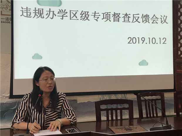 接下来由谢红琴副校长对昨天区对我校违规办学专项督查进行了反馈,要求全体教师自我检查,自我反省,爱岗敬业,依法治学,重德为师,为人师表,以爱执教,做为人民服务的好教师,让人民满意的好教师。