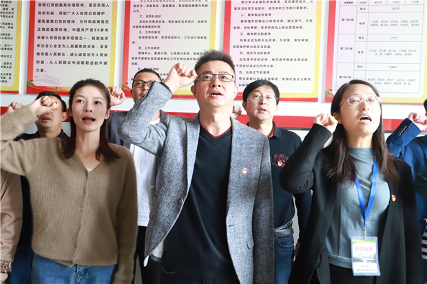 党员会上,支部书记、校长殷国伟就学校推进“不忘初心、牢记使命”主题教育作了阶段总结,指出了存在问题和后续需要开展的工作。组织委员卢庆平解读了《关于开展“四重四亮”活动工作方案》的通知,带领大家对梳理出的党员应知应会知识进行了学习。随后,全体党员填写了“四重四亮”公开承诺书。然后,支部分三个党小组进行研讨交流,所有党员同志谈了自己的入党志愿,回顾交流了入党经历,表达了自己的入党初心。最后,全体党员佩戴党徽,来到支部活动室,在党旗下,一起重温了入党誓词,