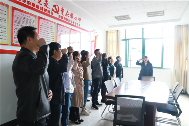 此次主题党日活动分为党员大会、党小组讨论、集中宣誓三个部分。党员大会由殷国伟书记主持。
