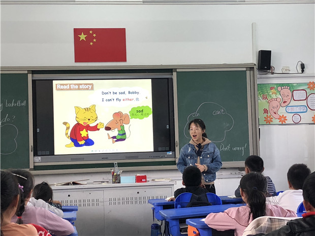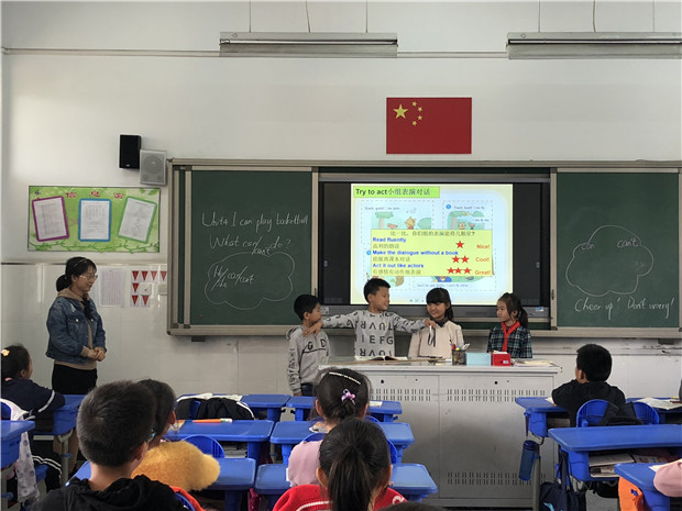 课前,张老师积极探索,通过试上调整教学环节;课上,张老师以和蔼可亲的态度有序开展教学,完整地呈现了一堂颇有亮点的教研课,组内老师们也收获颇丰。在日常教学中,老师们都发现学生对刚学的内容印象深刻,但若不及时巩固、及时纠正,不仅会很快遗忘,而且会使学生在听、说中产生更多的错误与偏差,以至形成错误的思维定势和语言习惯。本堂课主题是四年级上册第四单元I can play basketball的第三课时,话题围绕“能力”展开。张老师关注学生的情感,创造宽松、民主、和谐的教学氛围,尊重每个学生,鼓励他们积极尝试,及时发现他们的进步并给予相应的表扬,保护他们的自尊心和积极性。 张老师还注重创设各种合作学习活动,促进学生互相学习、互相帮助、体验成功、合作发展。通过这种有效地小组合作学习组织教学,既能增加学生的语言实践机会,营造语言氛围,也能培养学生直接用英语思考、表达的习惯。张老师在教学环节最后还拓展了一篇相关的绘本阅读,既能拓展学生的词汇量,也提升了学生的语段输出能力,让孩子们感受英语的魅力和趣味。