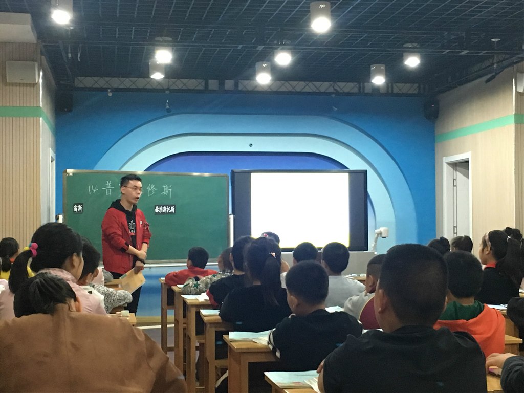 第二节课,熊铭泽老师展示了《普罗米修斯》的第一课时。熊老师通过复习旧知导入,联系之前学过的神话,让学生能对神话故事有更深的认识。熊老师这堂课让我印象最深的是在引导学生概括课文内容这一过程。这篇课文人物名字比较难读,熊老师通过词串把人物单独板书,引导学生小组讨论,用两个字概括两个神之间发生的故事,这样就把原来复杂的问题简单化,学生掌握课文内容也就更加轻松了。回顾单元导读,根据起因、经过、结果的顺序进一步概括课文。根据板书说主要内容,先指名说,再让学生自己说,最后老师再明确概括的方法,从实践到理论,这也非常符合现在倡导的“授人以渔”的教学模式。精讲起因时,让同学们从“悲惨”中体会人们生活没有火的日子,然后大胆想象有了火之后人类又会是怎么样的情境,充分激发和训练了学生的想象力。