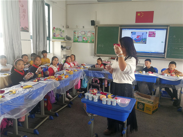 四(4)班刘希文的妈妈为孩子们带来了一堂生动有趣的水果沙拉制作课。在制作的过程中,刘希文的妈妈还传授孩子们生活小知识,培养学生的动手能力;不仅让孩子近距离的接触生活、感受生活,还让孩子们在学习中理解生活的真谛,养成良好的品德。