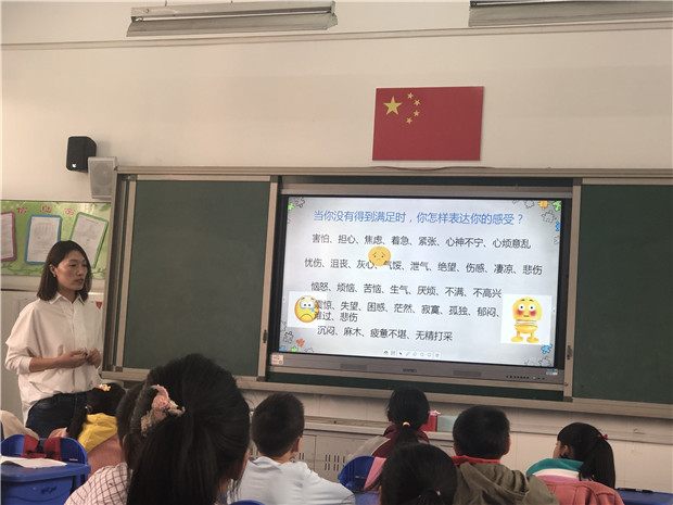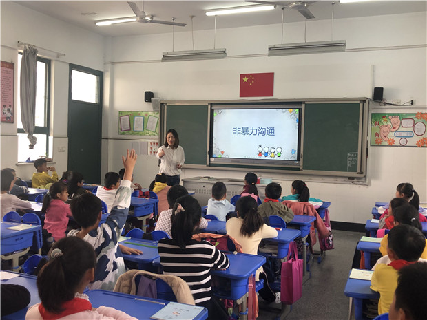四(3)班邀请到的是王文泽的妈妈,她充分利用自己从事人力资源管理的经验,和孩子们分享了与人沟通的技巧。她从区分观察和评价、充分表达自己的感受、说出自己的期待(需要)、提出自己的具体请求等四方面入手,深入浅出地教孩子们更好地和家长、同伴、老师沟通交流,让自己成为人见人爱、花见花开的孩子。