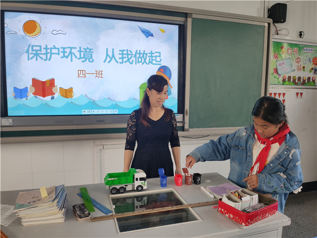 四(1)班谢孟蓉妈妈给孩子们上了一堂别开生面的环保课,谢妈妈紧紧围绕“保护环境,从我做起”这一主题展开,通过PPT和视频的形式将大自然为我们提供了生存的环境、人与环境、环境现状等方面内容进行生动的讲解,并发出“垃圾分类”的倡议,在孩子们的心中种下了一棵小小的环保之芽。