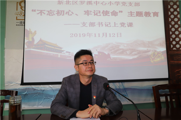 为贯彻学习习近平新时代中国特色社会主义思想,推动“不忘初心 牢记使命”主题教育高质量发展,11月12日,罗溪中心小学党支部开展了“不忘初心、牢记使命”主题教育“书记上党课”活动,由支部书记为全体党员上了一堂主题为“践行四讲四有,做新时期合格党员”的生动党课。