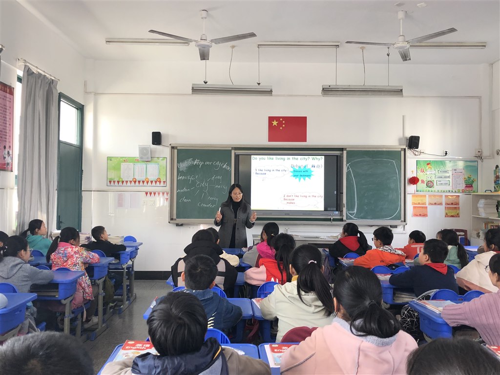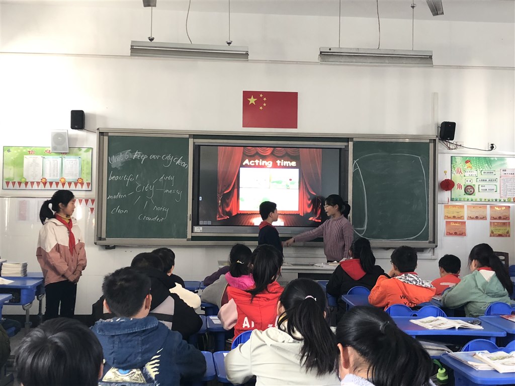 谢红琴副校长教学功底扎实,教学经验丰富,善于调动孩子们的积极性,善于引导孩子主动学习,通过扎实的语言训练和生生合作,提升学生语言能力。通过精心准备,谢校长呈现了一堂语言训练扎实、精彩纷呈的课堂, 也让年轻教师们学到了很多。本节课围绕“城市环境”话题展开,和学生们的日常生活密切相关。通过歌曲和视频导入,活跃氛围的同时,复习巩固了Story Time板块中的语言结构。随后进行Sound Time板块的教学,通过阅读,寻找一般疑问句和陈述句的音调规律。随后在Cartoon time的教学中,谢校长能通过一些问题巧妙地引导学生进行自主学习。通过有效的小组合作学习组织教学,既能增加学生的语言实践机会,营造语言氛围,也能培养学生直接用英语思考、表达的习惯。最后的写作环节,不仅能让孩子们有一个综合的语言输出,同时也能提高六年级学生的写作能力。