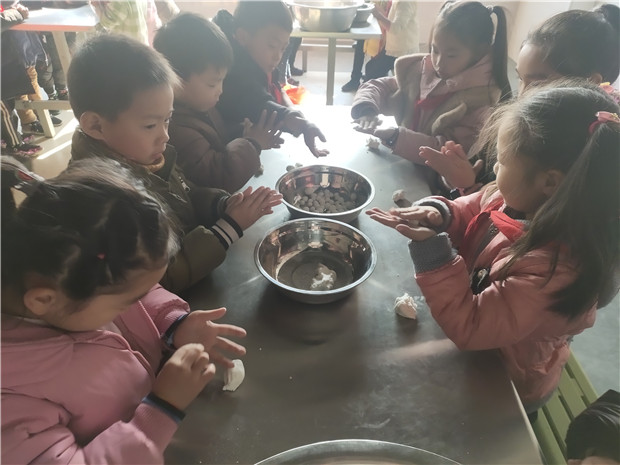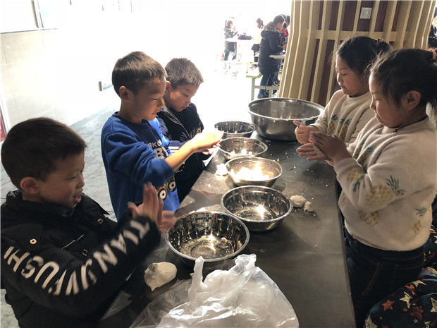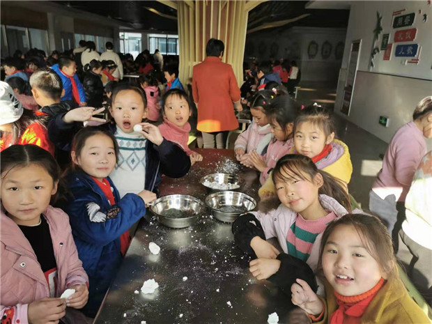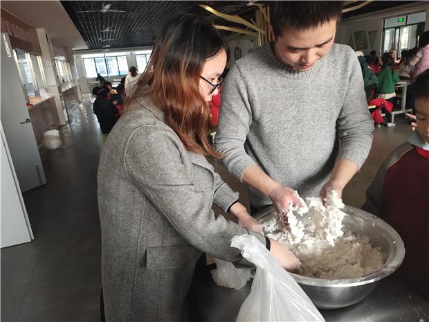 12月6日下午,家长志愿者将大袋大袋的糯米粉拎进了食堂,顿时孩子们一片欢呼,用热烈的掌声欢迎前来的叔叔、阿姨。