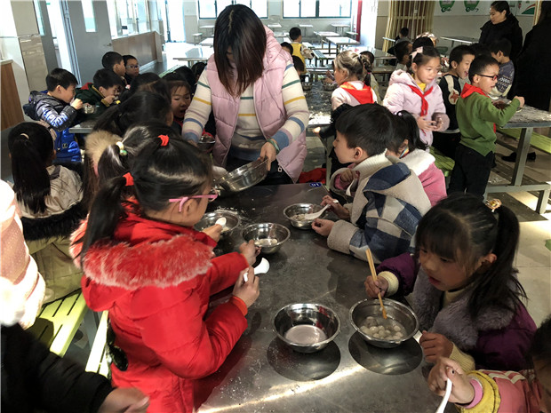活动接近尾声,孩子们开始品尝美味的汤圆,一个个小脸洋溢着幸福的微笑。一些有心的孩子在自己品尝的同时,不忘辛苦忙碌的家长志愿者,纷纷向他们塞上几口甜甜的汤圆,孩子们笑了,志愿者笑了!