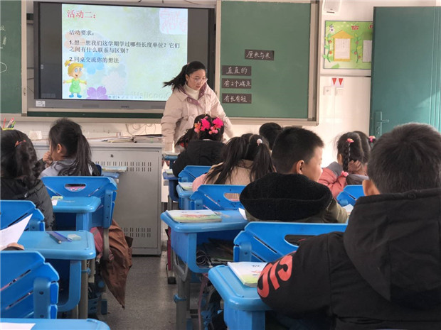 二年级刘丽雅老师为大家展示的是《厘米与米的复习》。刘老师教学时能够关注学生的学习起点,因为是复习课,学生已经对这一节课的所有知识点都有了一定基础,所以刘老师就重点引导学生自主去整理知识,串点成线,联线成面,形成知识网络;运用知识去解决生活实际问题,已达到培养思维的逻辑性、灵活性、严密性等。整个过程分为两大块:一、整理。通过整理唤醒了学生头脑中的零碎记忆,使之形成知识网络。二、练习。刘老师在练习题的设计上,既注意到了层次上的由浅入深,又注意到了知识面的宽度,特别考虑到了学生在本单元的学习中易错的题型,让学生及时查缺补漏,全面提高学生的知识水平。