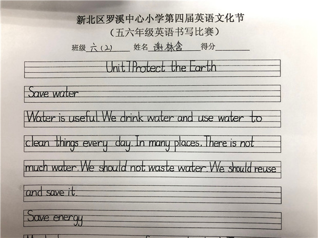 我校英语老师从字迹、内容等方面综合评价,认真评选,26份作品脱颖而出,获得了一等奖。
