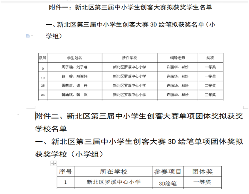 罗溪中心小学喜获新北区第三届创客大赛3D绘笔团体一等奖