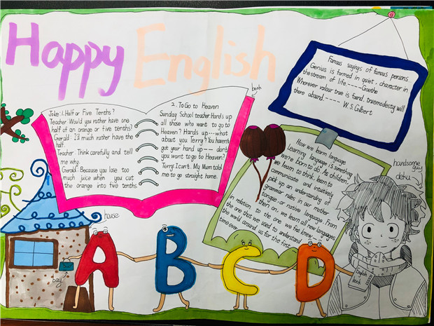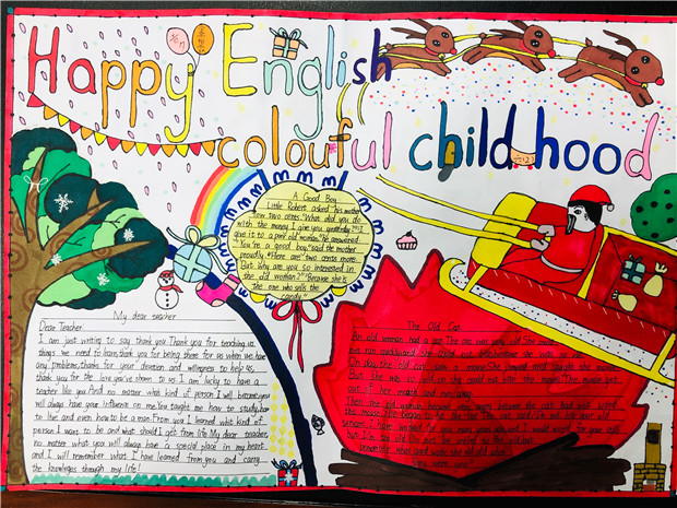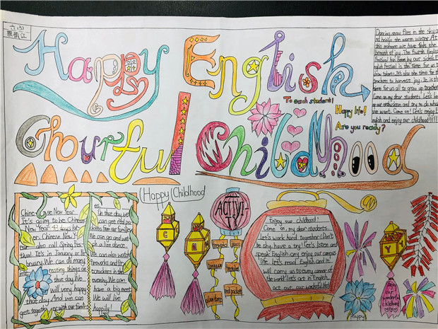 为了丰富学生的课余生活,拓展学生的知识面,激发学生英语学习的兴趣。12月23日至27日,罗溪小学五六年级学生参与了第四届英语节系列活动——以“Happy English,colourful childhood”为主题的英语手抄报比赛。