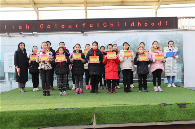 尽管冬日寒风阵阵,学生们依旧热情不减。闭幕式上,首先由英语才艺大比拼中的优胜者为全校师生带来了精彩的才艺表演:三年级可爱的孩子们为大家朗诵的自然拼读字母歌;四年级同学擅长歌唱,为大家带来了几首耳熟能详的英语歌曲;五年级同学们擅长讲故事,他们语言生动,语调优美,动作自然,表演得惟妙惟肖。