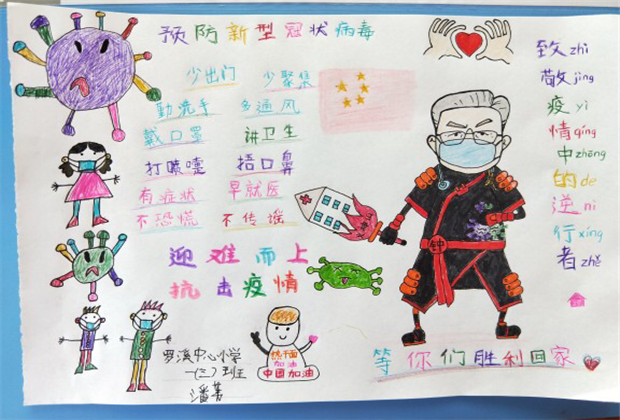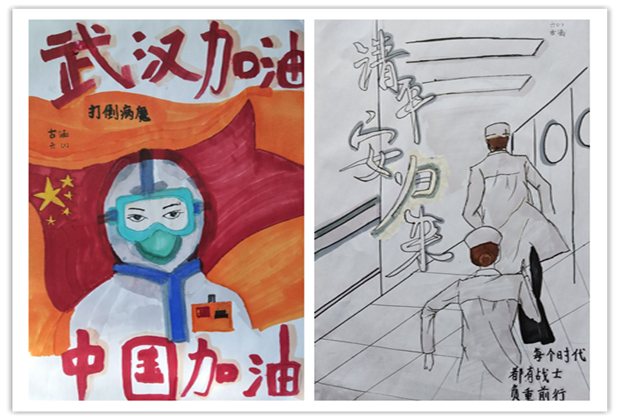 现在是全力打赢新型冠状病毒肺炎疫情防控阻击战的关键时期, 这个特殊的假期里,在疫情防控工作极端迫切时,大家万众一心,众志成城,科学防疫。同学们除了戴口罩、勤洗手,做好自身日常防护工作外,还可以学以致用,拿起手中的画笔,用自己的美术作品提醒人们增强防护意识、传递信心和决心、传播正能量,用实际行动积极参与到疫情防控工作中来。