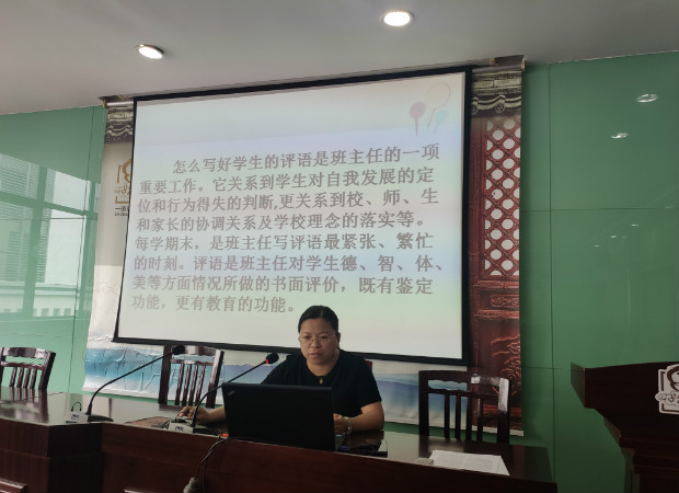 接着由区骨干班主任曹云娣老师向班主任们分享了撰写评语的经验。评语撰写要如何做到“评而有度,语而用温,撰而有方”,曹老师提出以下建议:1.认真对待每位学生,以亲切生动的语言感化学生;2.巧妙指出学生不足,以真心的赞许燃起学生希望;3.留意学生活动情况,以细腻的描述展现学生个性;4.提供学生目标路径,以激励与竞争促进学生成长;5.考虑评语的艺术性,以精练优美描绘学生的生活。曹老师认为,好的评语,既是对学生今天的指正,也是对学生明天的希冀,在班级工作中曹老师真切地做到了“评论有法,育人无声”,让在座的班主任受益匪浅。
