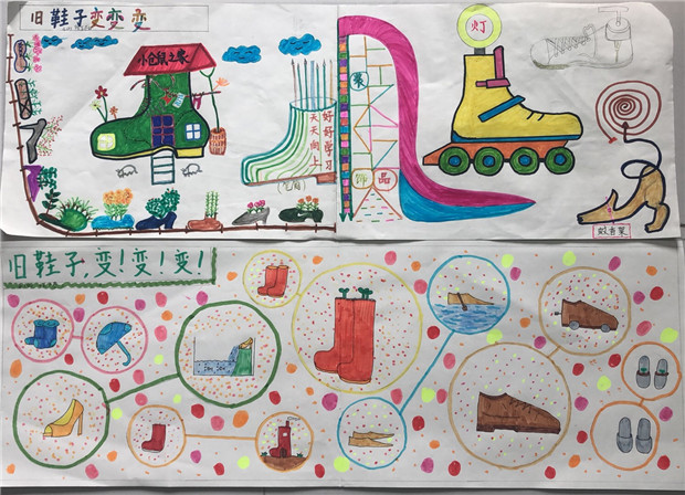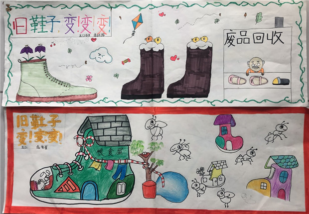 众所周知,垃圾是放错了地方的资源。上学期,同学们在老师的带领下学习了垃圾分类的意义,增强了规范投放垃圾的意识,用实际行动来保护环境。本学期,学校开展“2019年的鞋子去哪儿了”科学调查体验活动,了解了目前鞋类产品消费物日益增多,而废旧鞋类产品处理主要是焚烧和掩埋,严重影响了环境并造成资源浪费。废旧鞋类产品可以回收利用的,可以进行爱心捐赠;可以通过粉碎和分选,制作塑胶跑道、运动场地毯;或者再生制作鞋底;或者创意利用等。