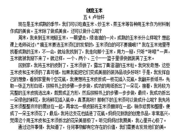 通过这次对玉米的观察、了解、采摘和品尝,孩子们学到了很多,他们用文字将这次的经历展示出来,我们一起去看看吧!
