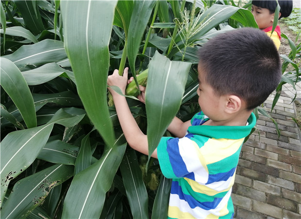 今天孩子们又一次走进了灵溪农场,农场里的这些玉米像是一个个小战士,整齐的方队,横竖成行。鼓囊囊的身体、红红的玉米须,墨绿的玉米秆,都在告诉孩子们玉米成熟啦!孩子们迫不及待地去掰玉米,左手抓住玉米秆,右手紧握玉米棒子,使劲一甩,“咔嚓”一声,便掰下来了,“咔嚓、咔嚓……”孩子们掰得可带劲啦!拿着圆鼓鼓的玉米棒子开心极了。