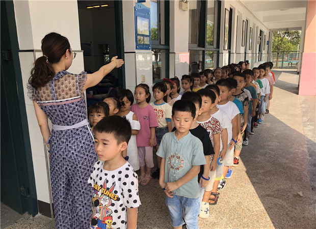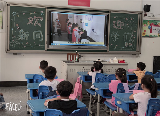 班主任老师和辅导老师耐心地给孩子讲解疫情防控的知识,观看疫情下一日常规的视频,教孩子在校园里如何保护自己。孩子们掌握得可快了,排队、如厕、接水、用餐,样样有条不紊。