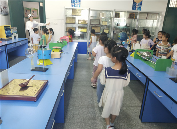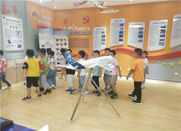 在老师的带领下,孩子们参观了校园,老师边走边给孩子们做介绍。哇!我们的学校真美真大啊!有美术教室、音乐教室、体育馆、图书馆、实验室,还有翰墨园、律动园、国防园、种植园。孩子们还参观了学校的国防教育基地,在这里还有一架飞机,真是太厉害啦!