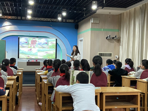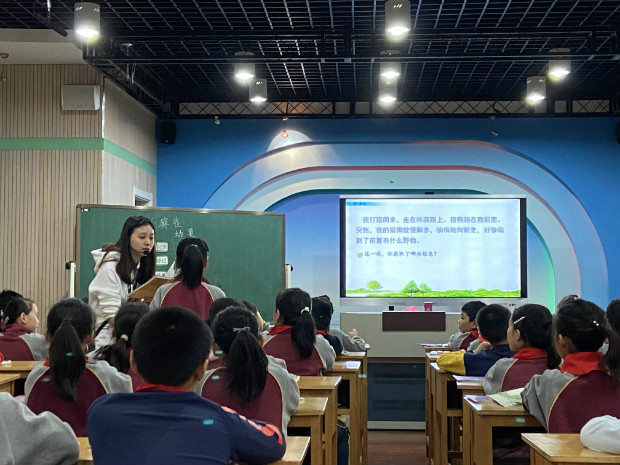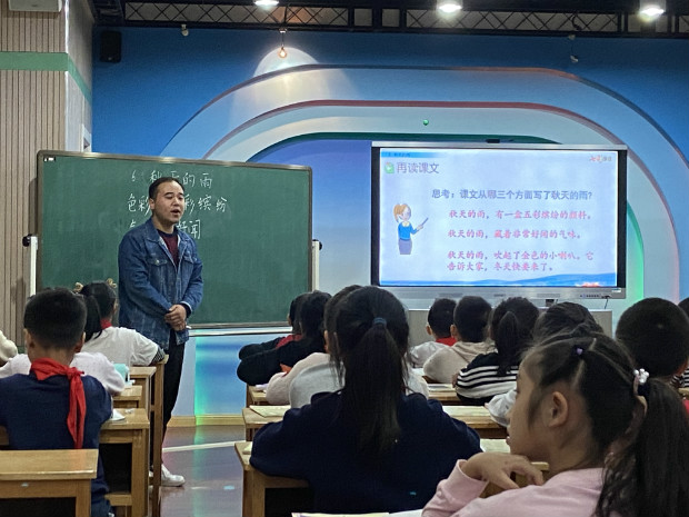 微格教室里,三(2)班的邹煜老师正在带领学生学习《秋天的雨》一课,文中那些比喻、排比、拟人的句子让学生不自觉地一遍又一遍地朗读起来,想象着同样的画面。“秋天的雨是一把钥匙,把秋天的大门打开了。”邹老师在教学中也给了学生一把有用的“钥匙”——如何找准段落的中心句。邹老师通过学生自读画关键句子,找出课文是从哪几方面写秋天的雨,引导学生学会借助段落的第一句话来读懂意思,又通过练习,对这一方法进行了实践和运用,教学扎实有效。通过学习,每一个学生都爱上了一个五彩缤纷的秋天。
