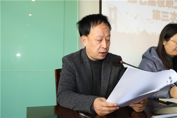 大会第四项,徐建峰同志作《代表提案解答报告》,对所有代表的提案作出了一一答复。并表示这些提案是老师们关心学校建设和发展的重要表现,承载着老师们对学校的关爱和期望,也是老师们智慧的结晶。